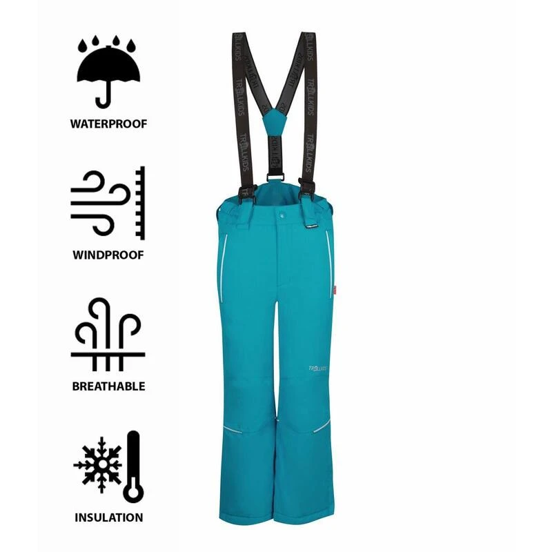 Pantalon de ski et de neige robuste et isolant avec une doublure en polaire. Imperméable, respirant, avec des poches, des réflecteurs et une jupe pare-neige. Cousu dans une membrane Aquaproof 6×6.