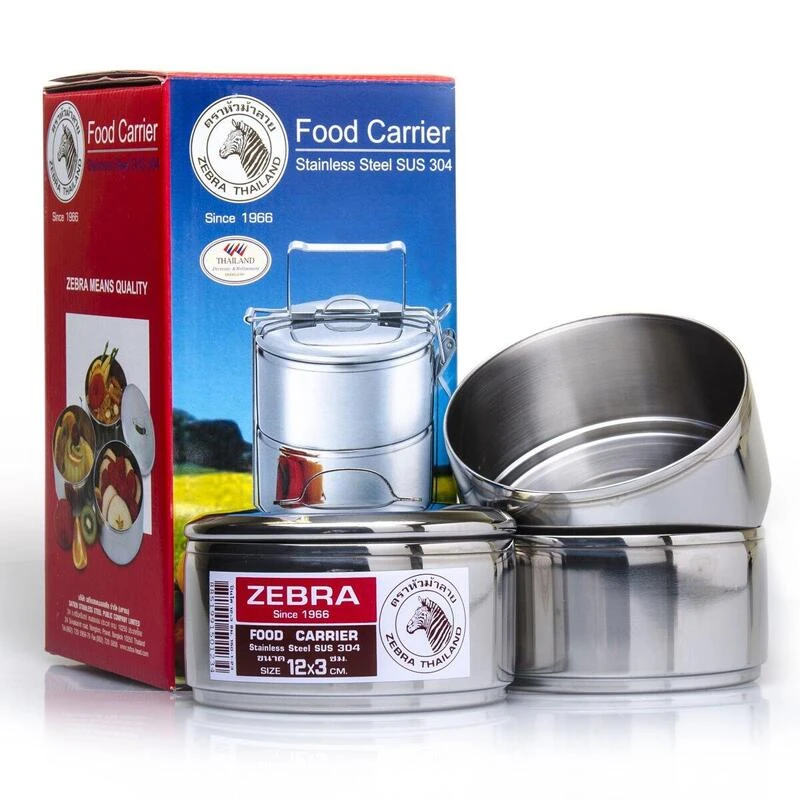 3 contenants en acier inoxydable qui s’emboîtent et se scellent facilement avec un système de clic. Pratique pour transporter ou conserver des aliments !